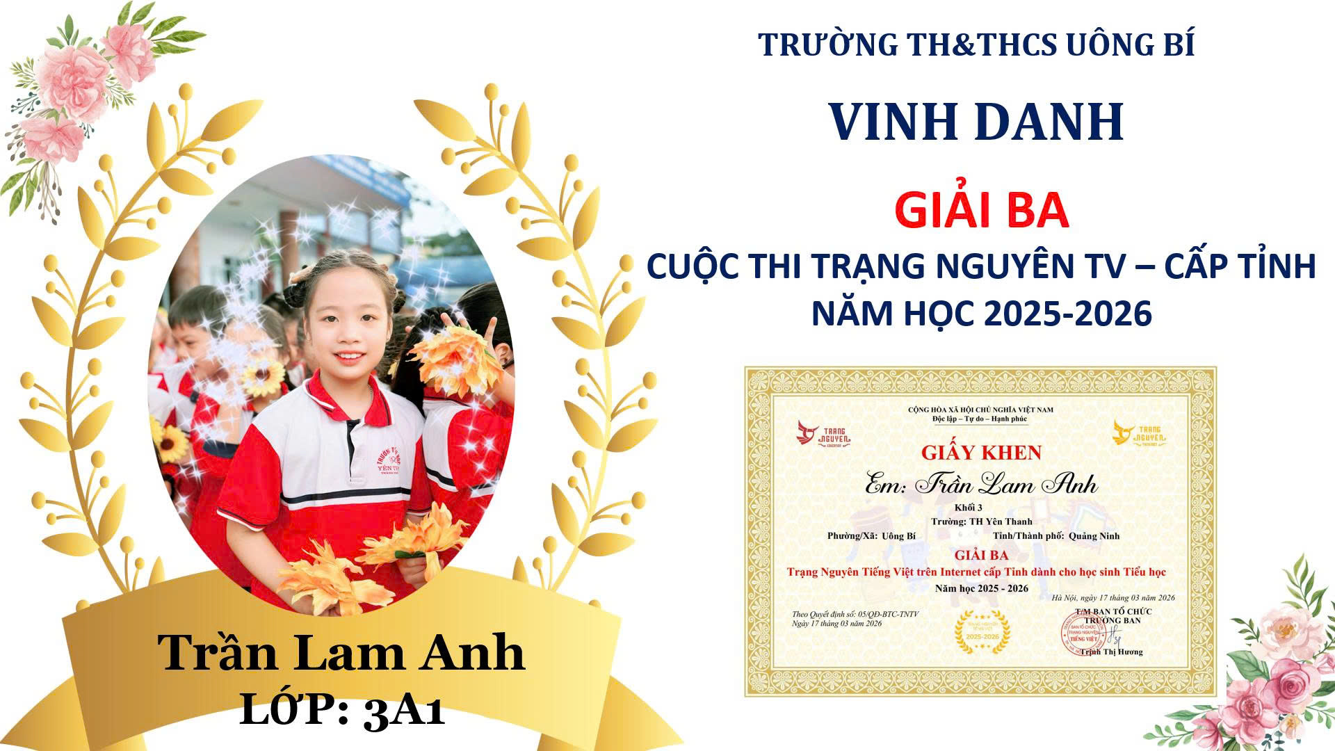 | 4 | HOÀNG HIẾU HẠNH ( Điểm trường Tiểu học Yên Thanh) |
