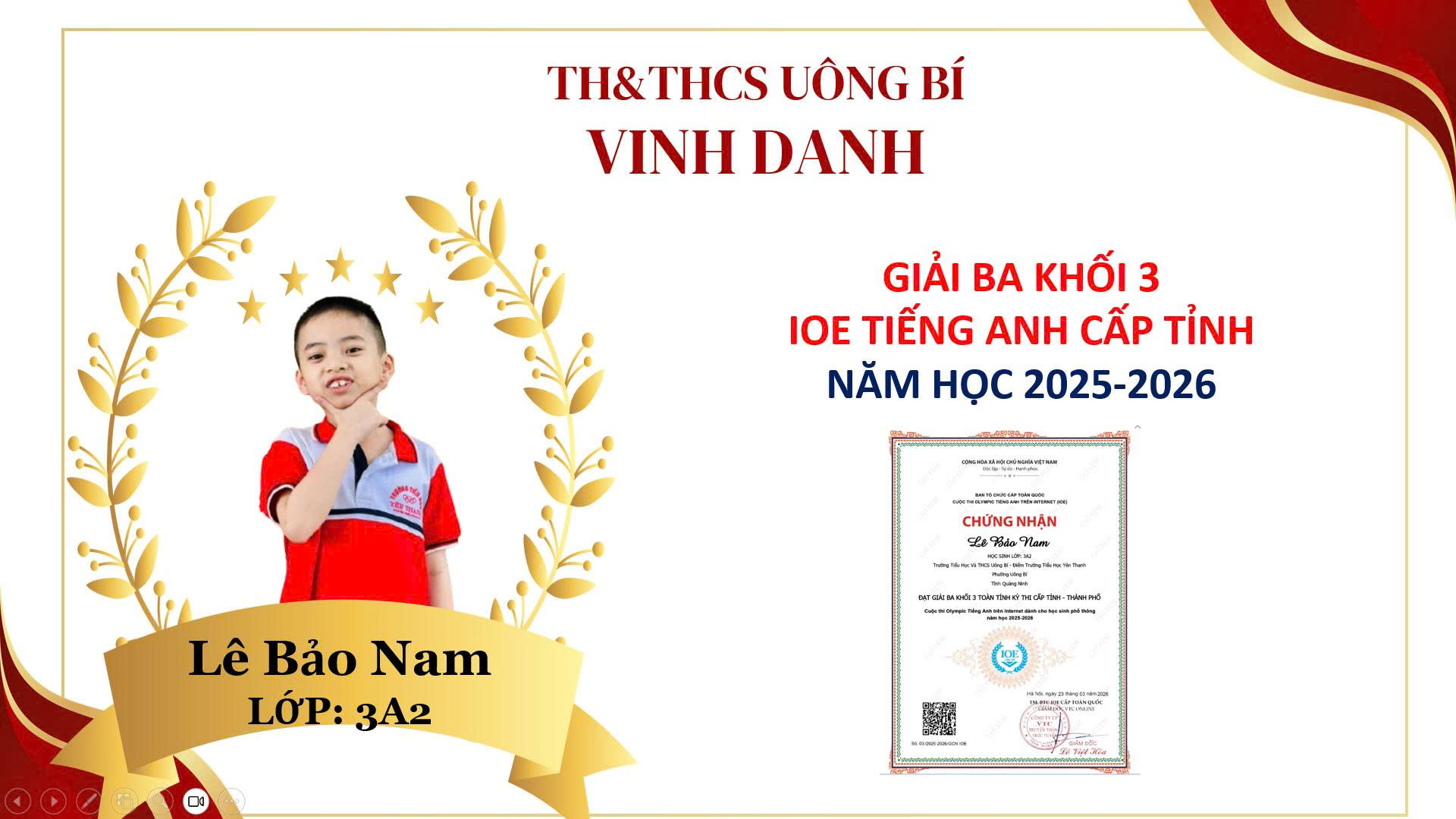 Lê Bảo Nam – Lớp 3A2: Giải Ba cấp tỉnh.